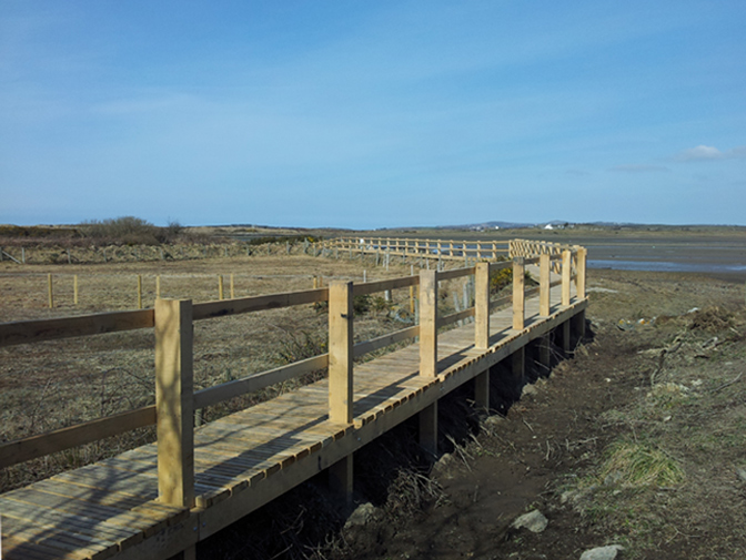 The boardwalk was to be built above a ‘clawdd’ wall, high enough so that the footpath was accessible even at the highest spring tides. We designed the boardwalk and produced a drawing for approval.